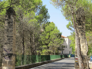 Un poco más adelante hay un cartel que indica “Casa de espiritualidad y albergue Baradello de Moya”. Debe de ser la casa. ¡Ya! Es asombroso cómo se acortan las distancias con la edad; creía recordar que tardábamos un buen rato en caminar desde la casa a la piscina ¡y no habrá más de 5'! Giro a la derecha en la dirección que señala el rótulo. Al verla no me cabe ninguna duda. ¡Es la casa de colonias! Hago una foto desde la verja: es propiedad privada. Pedalada a pedalada no puedo evitar entrar; pienso cómo explicaré toda esta historia si me interpelan. Pero no aparece nadie y avanzo fotografiando cada rincón de la memoria: el patio de atrás, que usábamos sólo de vez en cuando, por eso era especial; las mesas de piedra junto a la puerta y las duchas de fuera, donde a veces desayunábamos y se celebraban las veladas, las ventanas de nuestra habitación...